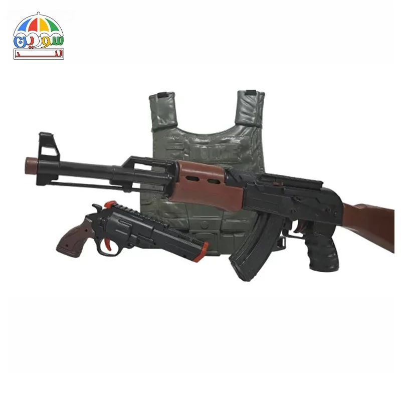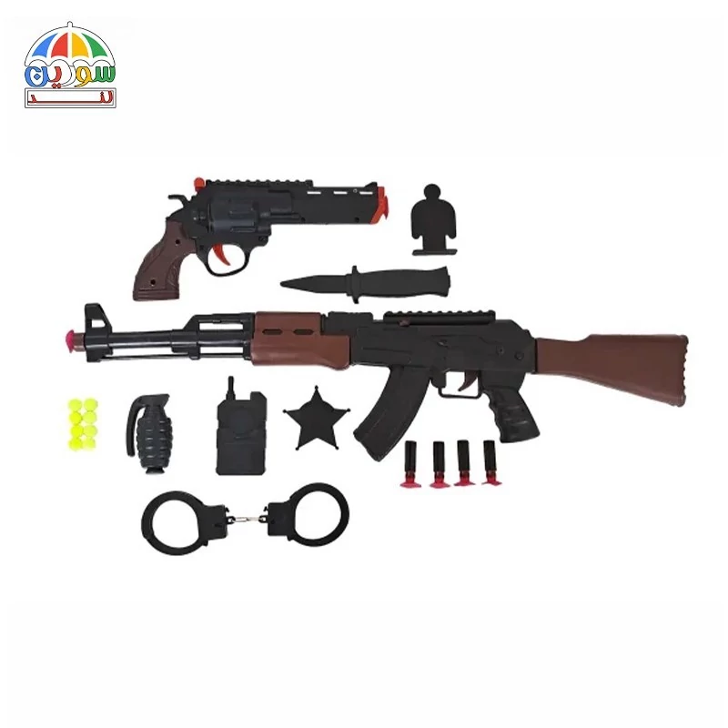 هیجان یک بازی پلیسی بیرون از خانه را با ست اسباب بازی پلیس کلاش جلیقه به کودکان هدیه دهید. این ست جذاب که شامل یک هفت تیر، یک کلاشینکف، گلولههای گرد پلاستیکی و تیرهای چسبونکی، جلیقه، چاقو، نارنجک، بیسیم، نشان پلیس و دستبند میشود، یکی از کاملترین ست های پلیسی برای نقشآفرینی کودکان به عنوان یک افسر پلیس است و جای اعتراضی را برای کودکان باقی نمیگذارد.